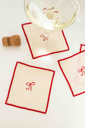 COMING SOON: Tied with a Bow | Laura Rees Art Handmade Embroidered Linen Cocktail Napkins (Set of 4)