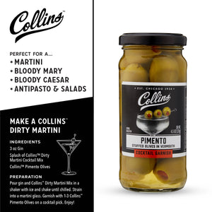 COMING SOON: Cocktail Olives | Collins Gourmet Vermouth Soaked Pimento Cocktail Olives (4.5oz)